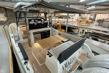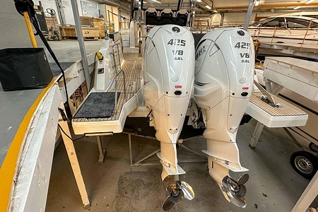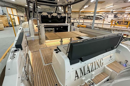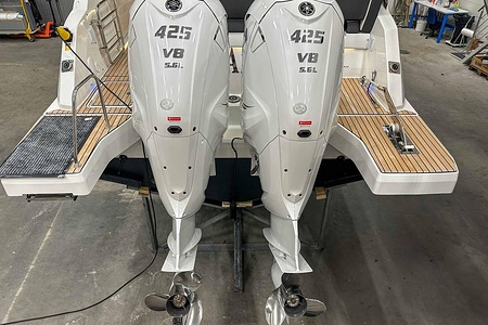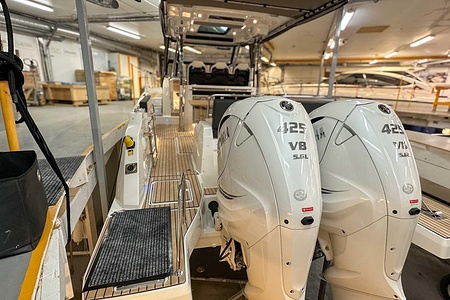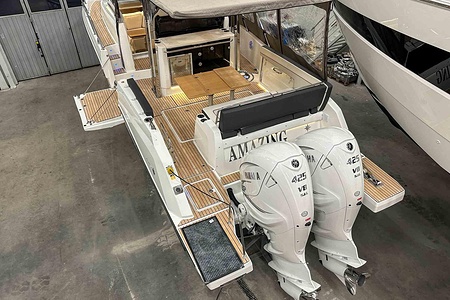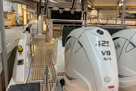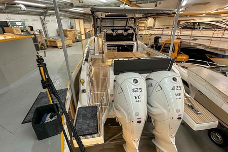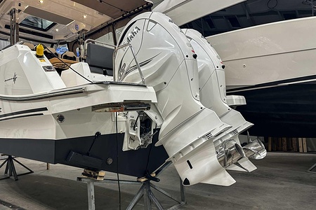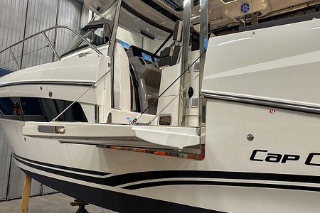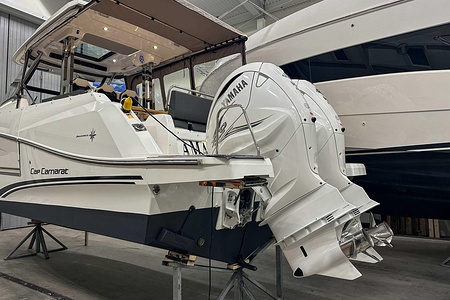 Uniquely equipped Cap Camarat 10.5 Series2 for sale! Unlike many similar boats in Europe, which are often fitted with the smaller V6 300 hp engines, our boat has the ultimate driveline – twin Yamaha V8 XTO 425 hp engines with joystick control. A combination that makes the boat powerful, responsive, and safe in all conditions.