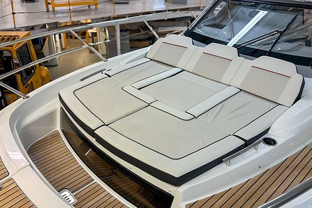 • Saloon and cabin upholstery in PVC Marlin Pure White & Jumbo Pure fabric