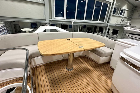 Twin Volvo penta IPS 650 (2 x 480 mhp) are fitted as standard and include dual station joystick controls and ACP (anti corrosion protection) system